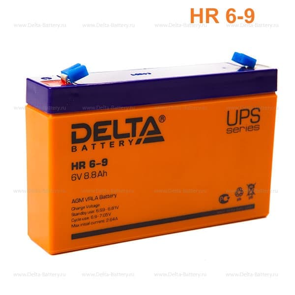 Герметизированный VRLA cвинцово-кислотный аккумулятор Delta HR 6-9 напряжением 6В и емкостью 8.8Ач изготовлен по технологии AGM (с микропористым заполнителем, пропитанным электролитом). Корпус изготовлен из негорючего ABS пластика. Срок службы аккумулятора достигает 8 лет. Аккумулятор относится к линейке DELTA UPS series и предназначен для работы в системах бесперебойного питания (ИБП). Обладает низким внутренним сопротивлением и высокой плотностью энергии. Дополнительно к аккумулятору у нас можно подобрать зарядное устройство для него, батарейный шкаф или стеллаж.