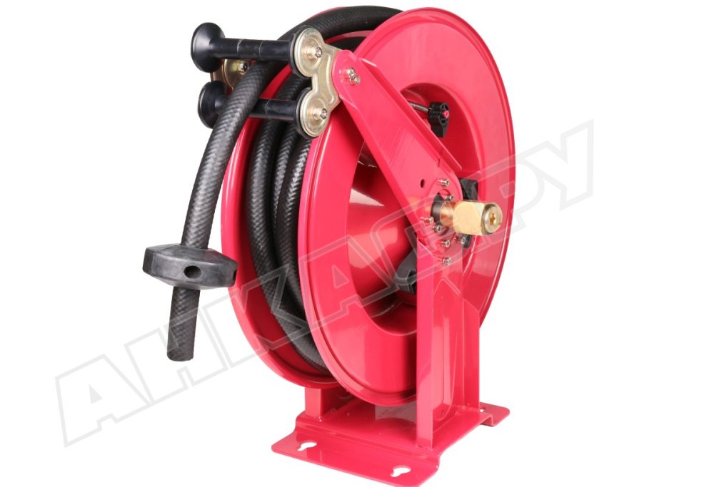 Эта модель особенно полезна при дозаправке тяжелой техники в карьерах, а также при строительстве дорог, где стандартные 4-метровые шланги оказываются недостаточными. Легко устанавливается на пол, стену или потолок благодаря монтажному кронштейну.
