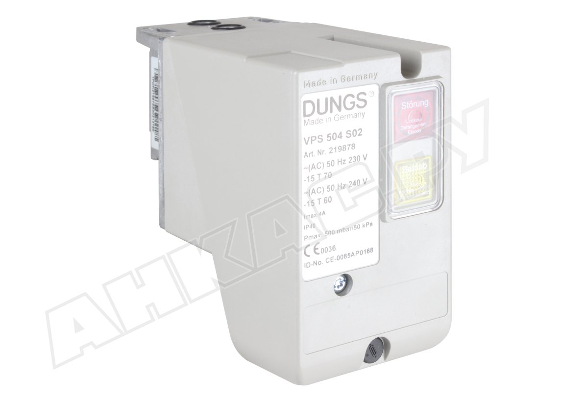 VPS 504 S02 идеально подходит для систем контроля герметичности, используемых в промышленных установках, сжигающих газ семейства 1-3, газ, полученный при очистке сточных вод, переработке органических отходов или биогаз (сухой, H2S<0,1% объема). Не рекомендуется использовать для газов, содержащих более 60% бутана. Устройство часто применяется для тестирования состояния электромагнитных клапанов DMV и универсальных газовых блоков Dungs. Проверка проводится перед каждым запуском горелки, в период предпродувки или после остановки процесса горения.
