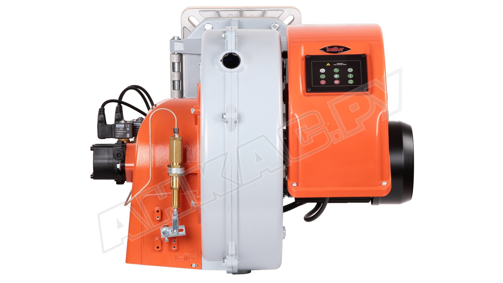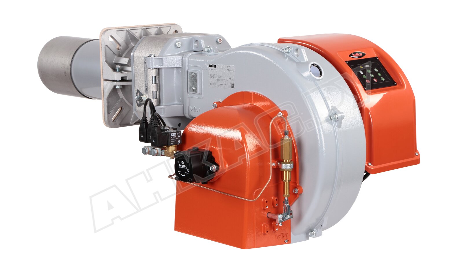 Корпус горелки изготовлен из алюминиевого литья с защитой от пыли и влаги класса IP40, а электрощит из литого алюминия имеет класс электробезопасности IP 55. Панель управления оснащена цветной индикацией, а для контроля и управления процессами розжига и горения используется топочный автомат, соответствующий EN 230. Электроподключение осуществляется через семи- и четырехштырьковый разъемы. Горелка комплектуется 2 соединительными фланцами, теплоизоляционной прокладкой и крепежом. Габариты горелки: 125x68x52 см. С этим оборудованием вы получите стабильную и надежную работу системы отопления.