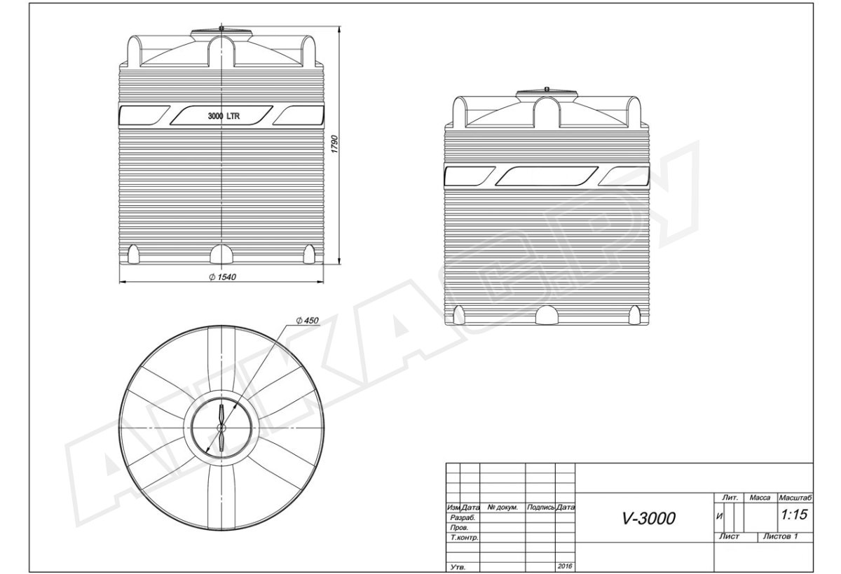 - Объём: 3000 л