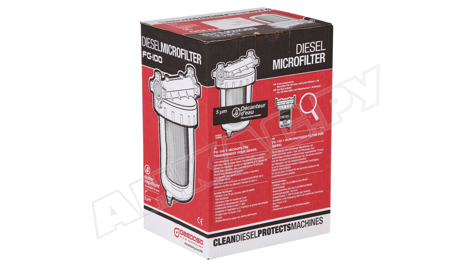 Фильтры-сепараторы дизельного топлива испанской марки FG-100 предназначены для эффективной очистки дизельного топлива. Это усовершенствованная версия известного фильтра FG-2, который ранее широко использовался на российском рынке. Новая конструкция обеспечивает улучшенную установку в магистрале благодаря алюминиевому держателю с фланцевым резьбовым соединением.