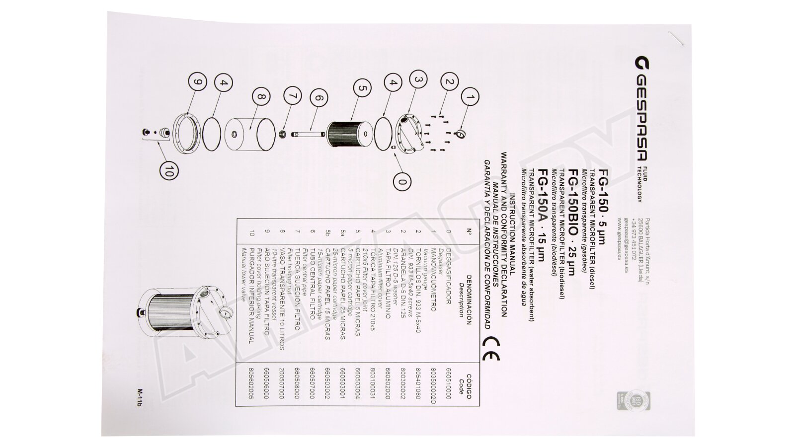 - Вид фильтруемой жидкости: Бензин, биодизель, дизельное топливо
