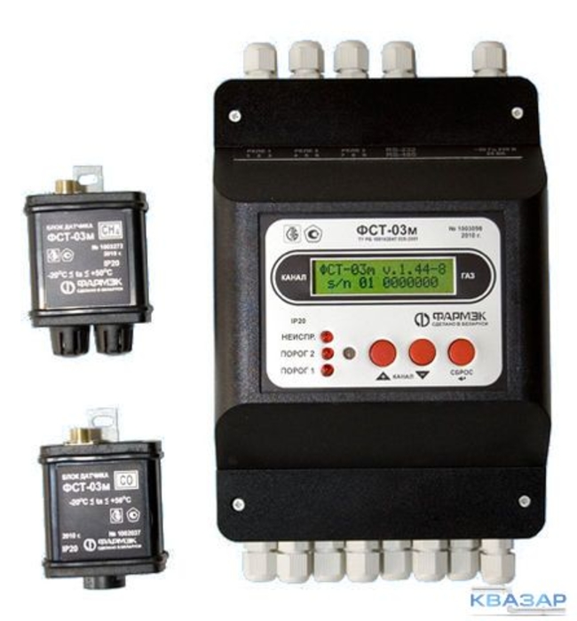 Газоанализатор ФСТ-03М: Основное назначение – использование в составе системы безопасности автономных котельных. Газоанализатор предназначен для эксплуатации в средах с содержанием механических примесей (пыли, смол, масел) и агрессивных веществ (хлора, серы, фосфора, фтора, мышьяка, сурьмы и их соединений) в контролируемой среде не выше ПДК по ГОСТ 12.1.005.