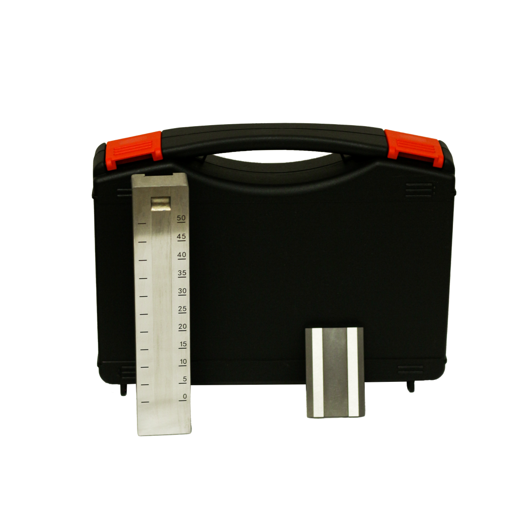 Устройство: Прибор состоит из стальной измерительной плиты и скребка. На измерительной поверхности плиты вдоль нее выполнен клинообразный паз с равномерно увеличивающейся глубиной от «0» до максимального предела измерения прибора. По краям паза нанесена цифровая шкала. Глубина паза соответствует шкале прибора. Конструкция обеспечивает удобство работы и высокую точность измерений.