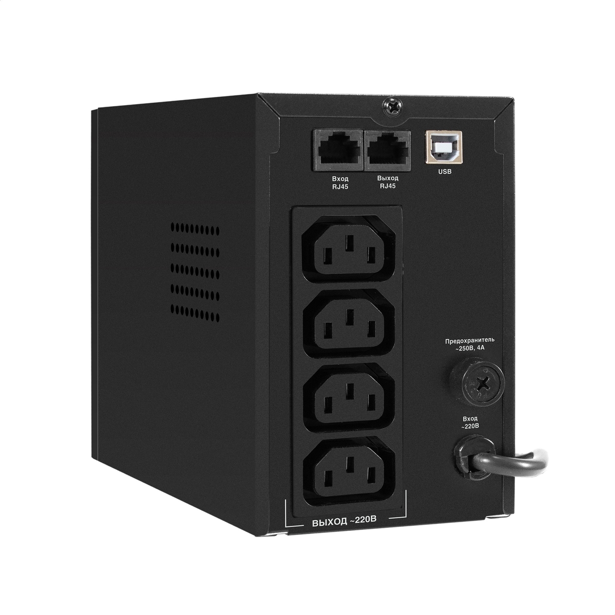 - Четыре выходных разъема: Позволяют подключить несколько устройств одновременно, что делает ИБП универсальным решением для обеспечения надежной работы вашей техники.