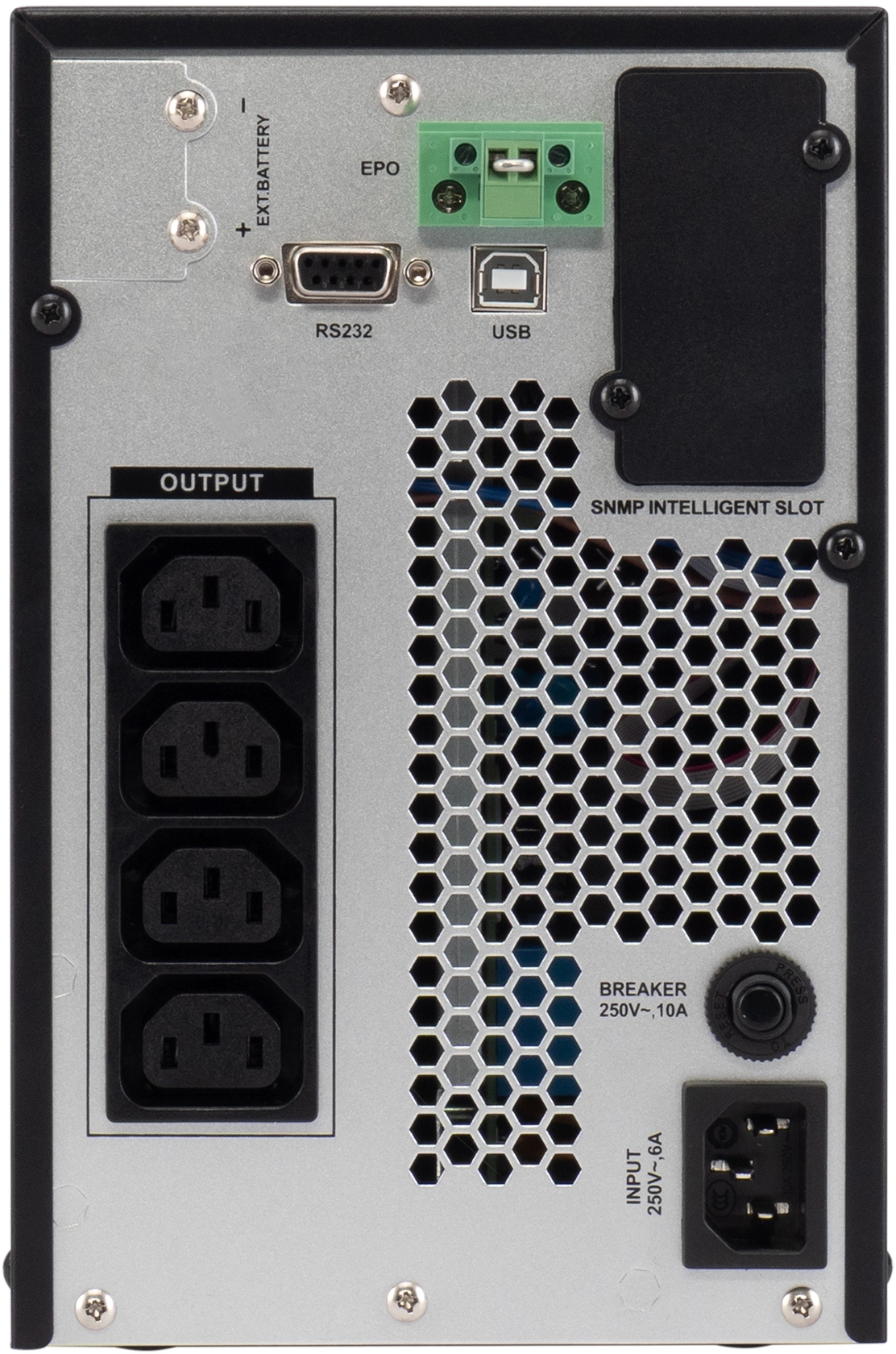 - Порт аварийного отключения питания (EPO) позволит экстренно отключить питание в случае пожара или аварии, обеспечивает безопасность персонала и защищает оборудование при чрезвычайных ситуациях