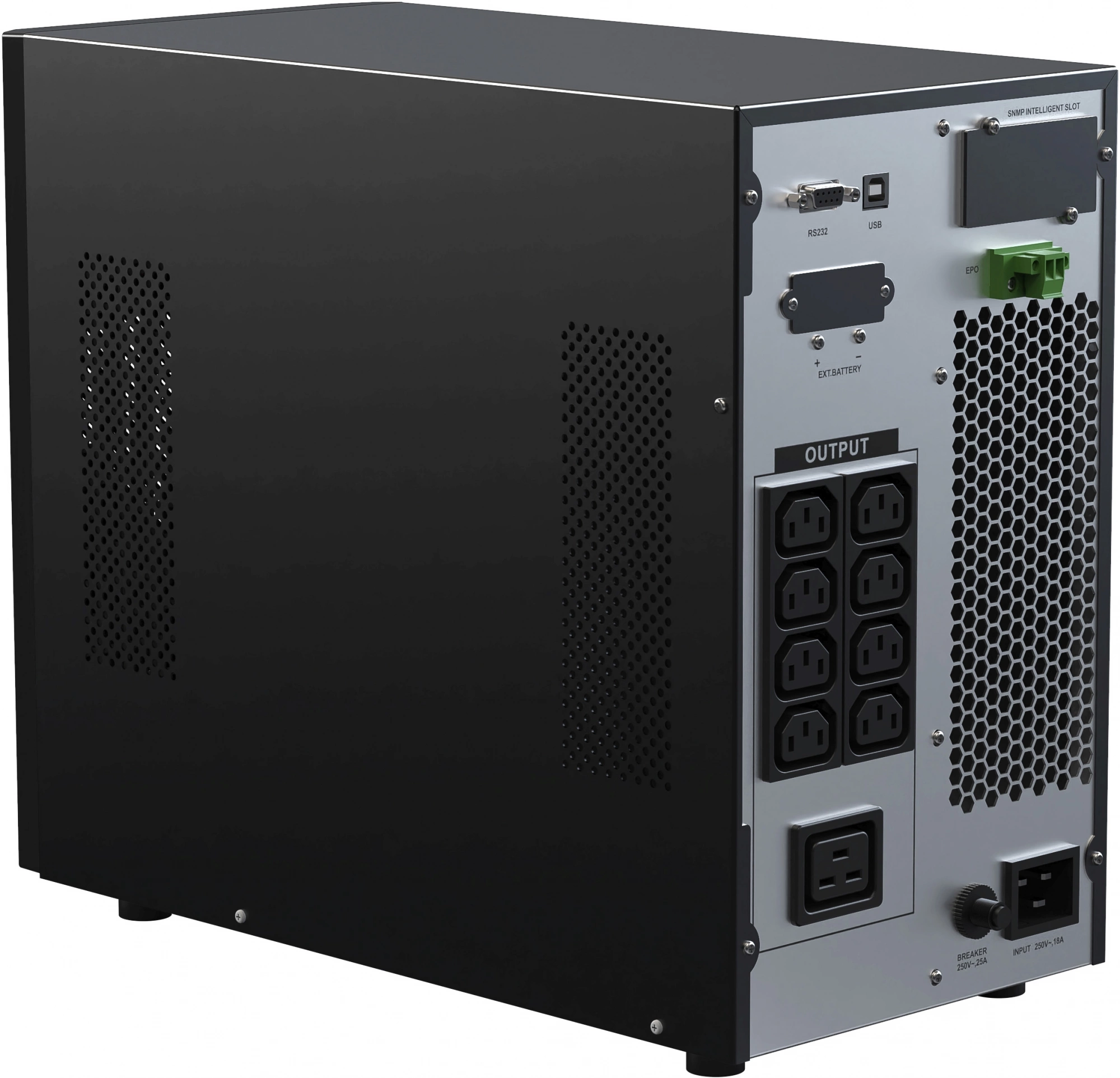 - Порт аварийного отключения питания (EPO) позволит экстренно отключить питание в случае пожара или аварии, обеспечивает безопасность персонала и защищает оборудование при чрезвычайных ситуациях