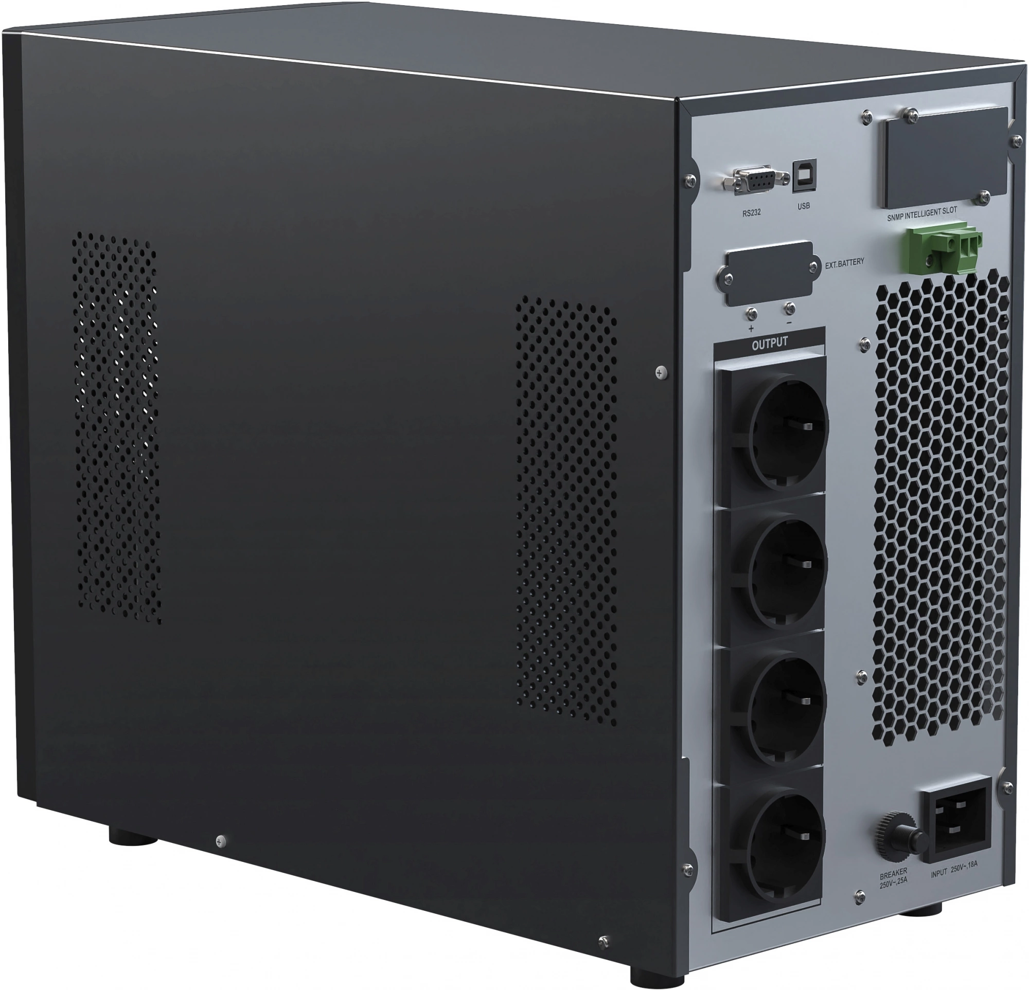 - Разъёмы RS-232, USB-B для интеграции ИБП в существующие системы мониторинга и управления, обеспечивая гибкость и удобство использования