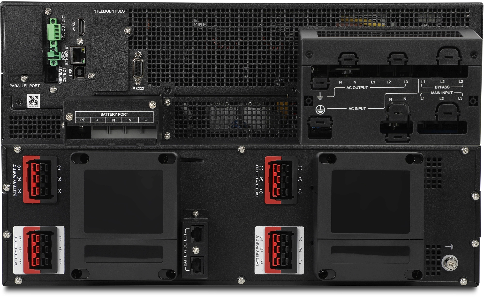 - Полный набор интерфейсов: Ethernet, USB, RS-232, "сухие контакты" и EPO (аварийное отключение) для интеграции в существующие системы мониторинга и управления.