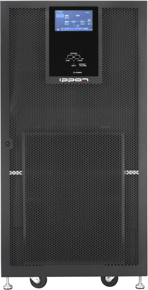 Независимо от нагрузки, ИБП поддерживает стабильный коэффициент выходной мощности. Это обеспечивает надежную работу подключенного оборудования, минимизируя риск сбоев и повреждений. Корпус ИБП выполнен из металла и для удобства перемещения оснащен роликами.