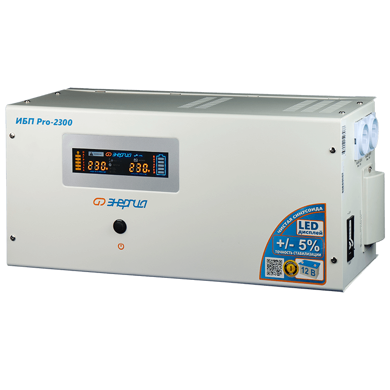 Энергия ИБП Pro-2300 используется в системах бесперебойного питания с внешними аккумуляторами и позволяет подобрать количество и ёмкость АКБ под требуемое время автономной работы. Благодаря цифровому ШИМ-преобразователю, инвертор выдаёт чистую синусоиду, что делает возможным использовать его с такими чувствительными приборами как газовые котлы, медицинское оборудование, и в других случаях, когда обычные ИБП с модифицированной синусоидой использовать нельзя. ИБП Pro относятся к классу линейно-интерактивных (Line-interactive) источников со встроенным стабилизатором, которые, при наличии сетевого напряжения (даже значительно пониженного), в отличии от онлайн-ИБП, стабилизируют напряжение не задействуя АКБ, экономя их ресурс и значительно продлевая срок службы аккумуляторов. Прибор не требователен к частоте питающего напряжения (допускает отклонение ±10% без перехода на АКБ) и может, в отличии от онлайн-ИБП, питаться от обычного бюджетного генератора без электронного управления частотой. Отличительной чертой серии Энергия ИБП Pro является повышенная точность встроенного стабилизатора (погрешность напряжения на выходе всего ±5%), что позволяет использовать их с оборудованием, чувствительным к скачкам и перепадам напряжения. Кроме того, в них используется запатентованная система непрерывного самотестирования и интеллектуальной зарядки, оценивающая ёмкость аккумулятора и его состояние, и выбирающая оптимальный режим заряда. А дополнительная защита от глубокого разряда АКБ и режим "тренировки" аккумулятора при сульфатации позволяют использовать как специализированные, так и обычные автомобильные аккумуляторы, делая прибор по настоящему универсальным. ИБП Pro также снабжен фирменной функцией энергосбережения, оптимизирующей расход энергии аккумулятора, переходя в режим сна при отсутствии нагрузки, что позволяет не расходовать энергию аккумулятора впустую. Система бесперебойного питания на основе Энергия ИБП Pro позволяет создать недорогую, надежную, бесшумную и полностью автономную инфраструктуру электроснабжения с расширяемой емкостью по доступной цене. И раз и навсегда избавиться от проблем отключения электричества, скачков и просадок напряжения, и обеспечить электроприборы качественным и бесшумным питанием во время отключений электричества.