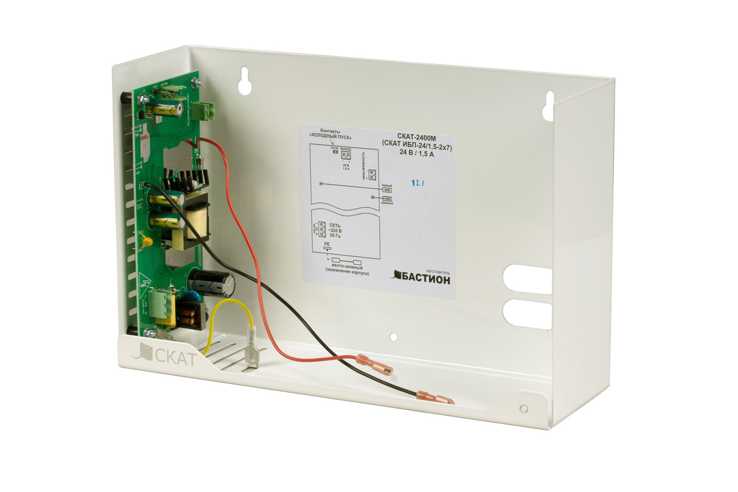 СКАТ-2400М включает три индикатора состояния и информационный выход "Переход на резерв", гарантируя комфортное получение актуальной информации в режиме реального времени. Электронная защита от короткого замыкания и аварий помогает избежать потенциальных рисков, обеспечивая надежность работы ваших устройств.