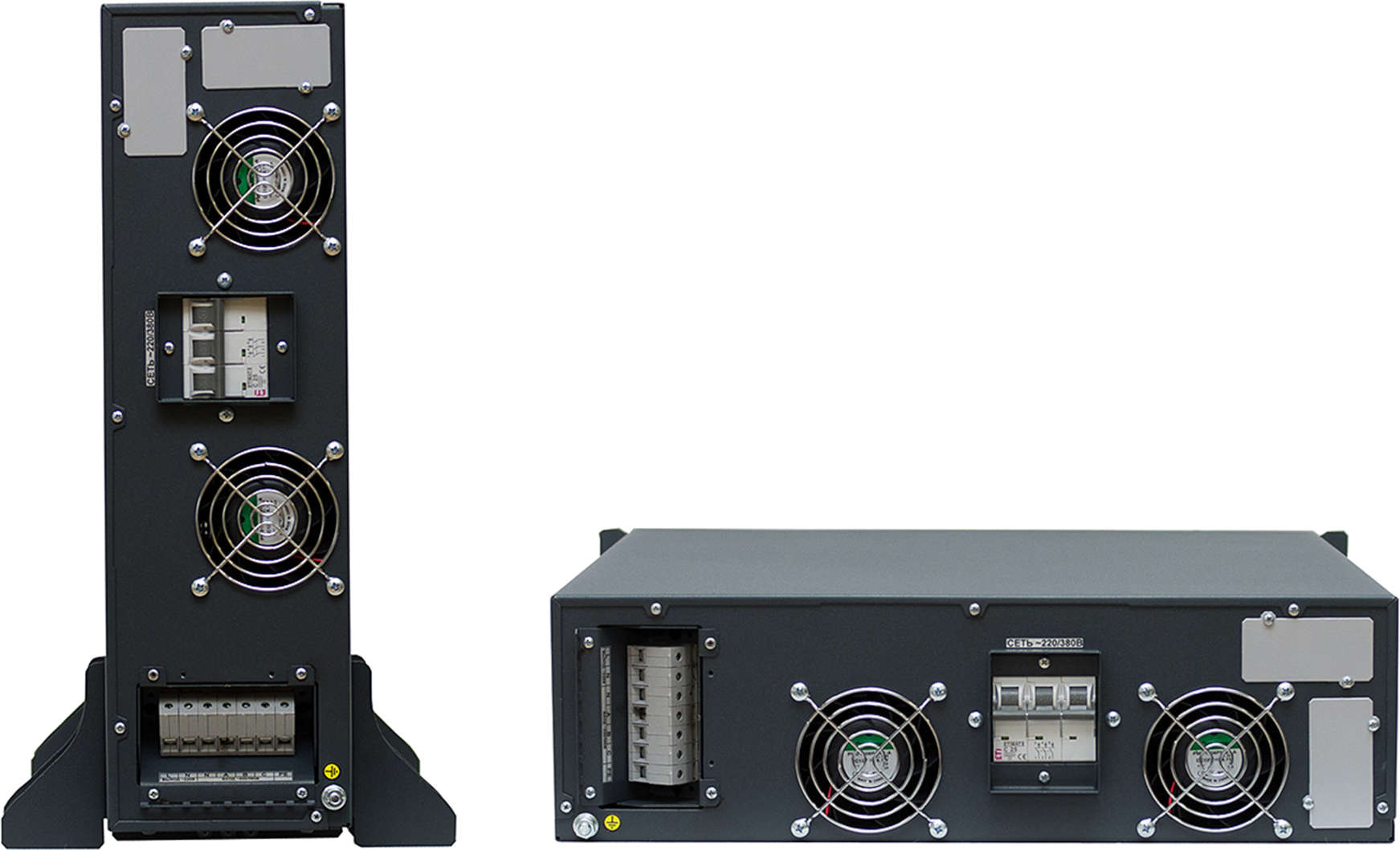 Стабилизаторы этой серии предназначены для напольной и стоечной установки. На передней панели располагаются четыре светодиодных индикатора, позволяющие контролировать работу стабилизатора. Наличие ЖК-дисплея позволяет отображать аварийные сообщения и параметры работы стабилизатора. В прибор встроены вентиляторы с интеллектуальной системой регулировки скорости вращения.