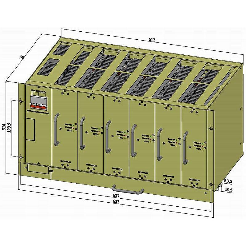 - корзина со сменной вентиляторной панелью для установки до 6 выпрямителей;
