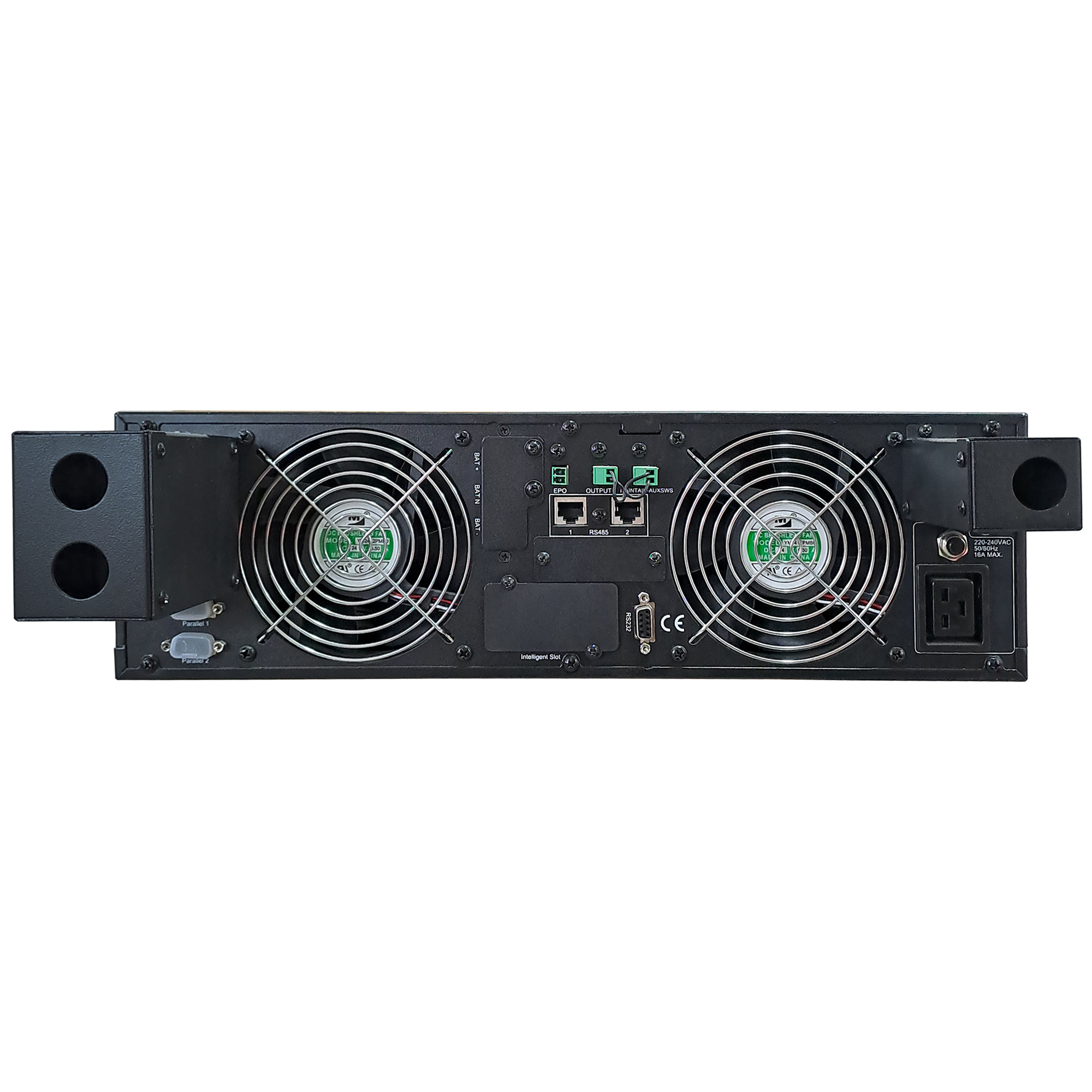 - Кнопки управления: Кнопка включения/выключения, Индикаторы состояния (входное напряжение, выходное напряжение, резервное питание, индикатор ошибки).