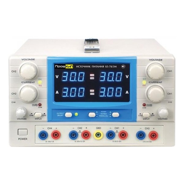 - Два ограниченно-регулируемых канала: 3 В … 6.5 В /3 А, 8 В … 15 В /1 А