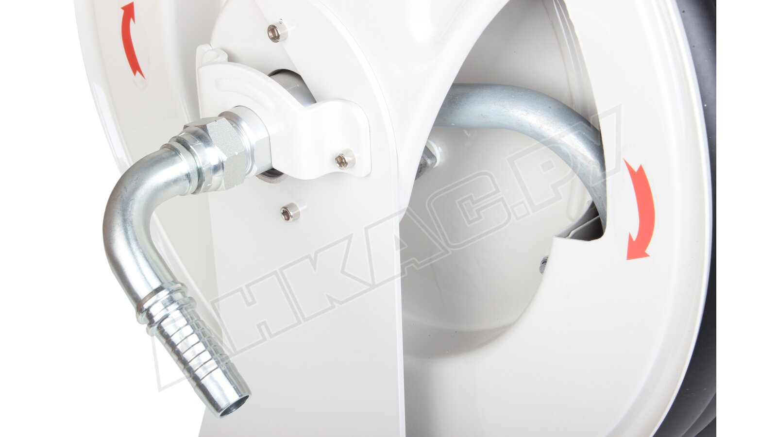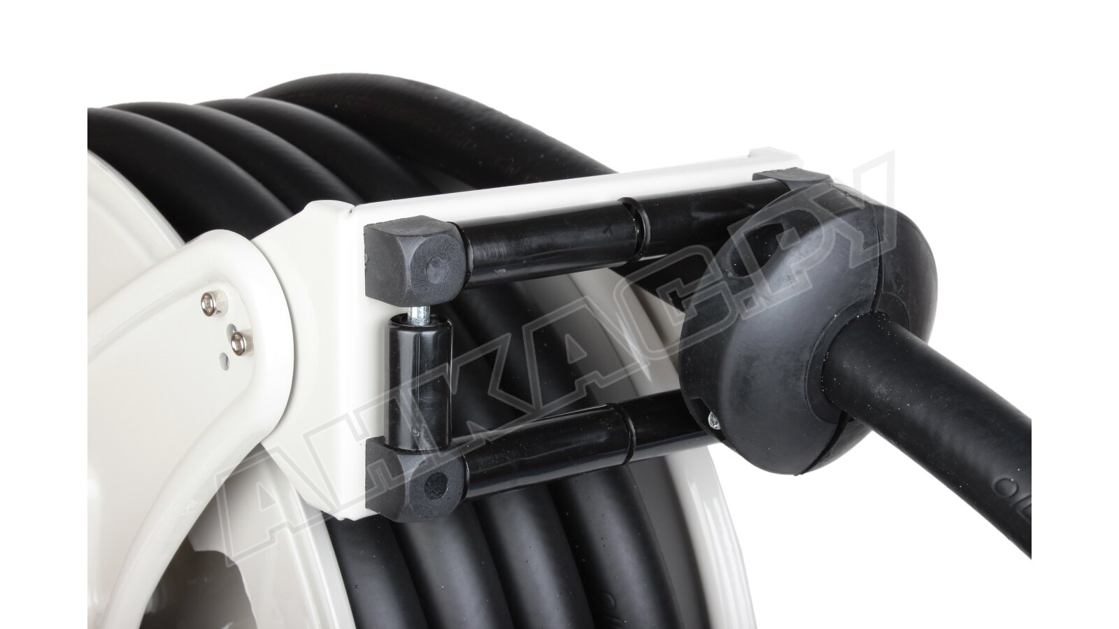 - Храповик: Предотвращает самопроизвольное сматывание шланга при раскрутке.