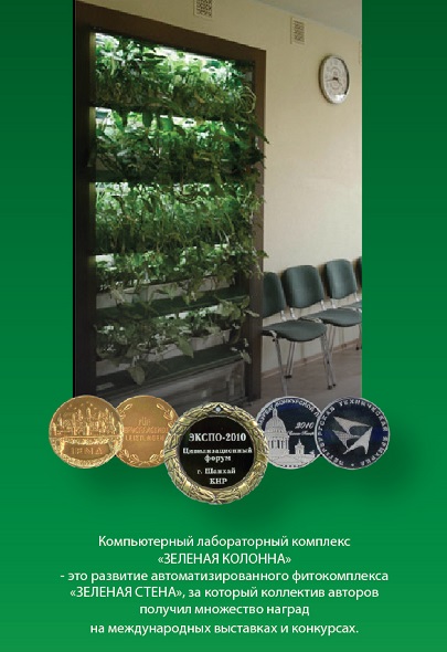 Компьютеризированный лабораторный комплекс «Зелёная колонна» предназначен для проведения демонстрационных и лабораторных работ в кабинетах биологии, естествознания, проектной и кружковой деятельности по биологии, экологии и естествознанию в общеобразовательных школах, средних и высших профессиональных учебных заведениях.