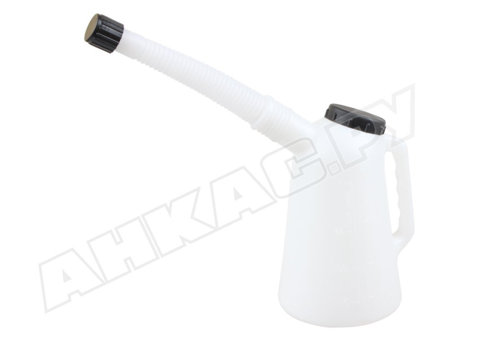 Удлиненный носик с ребристой поверхностью предотвращает выскальзывание из шлангов при соединении и минимизирует разлив топлива. Крышка обеспечивает герметичность конструкции, а ручка на корпусе облегчает переливание в другие резервуары.