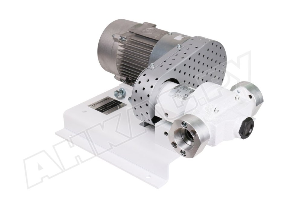 Особенности конструкции: Взрывозащищённый трёхфазный двигатель на 380 В и лопастной самовсасывающий насос, установленные на металлической платформе и соединённые ременной передачей. Встроенный bypass срабатывает при перекрытии потока пистолетом при работающем двигателе, обеспечивая циркуляцию топлива внутри насосного блока. В насосе имеется встроенный сетчатый фильтр для очистки топлива от крупных фракций.