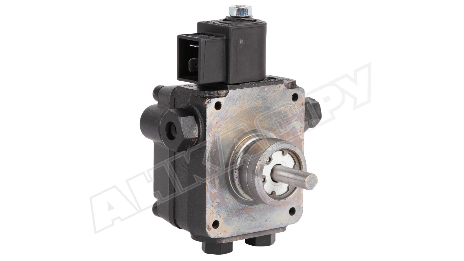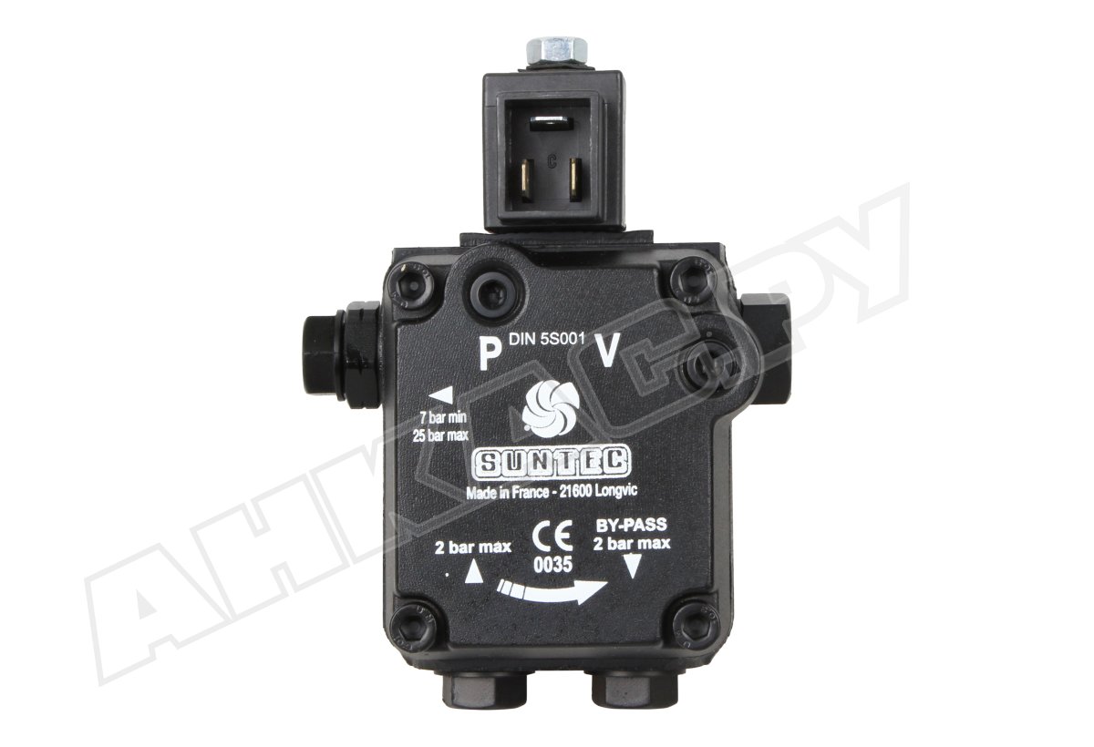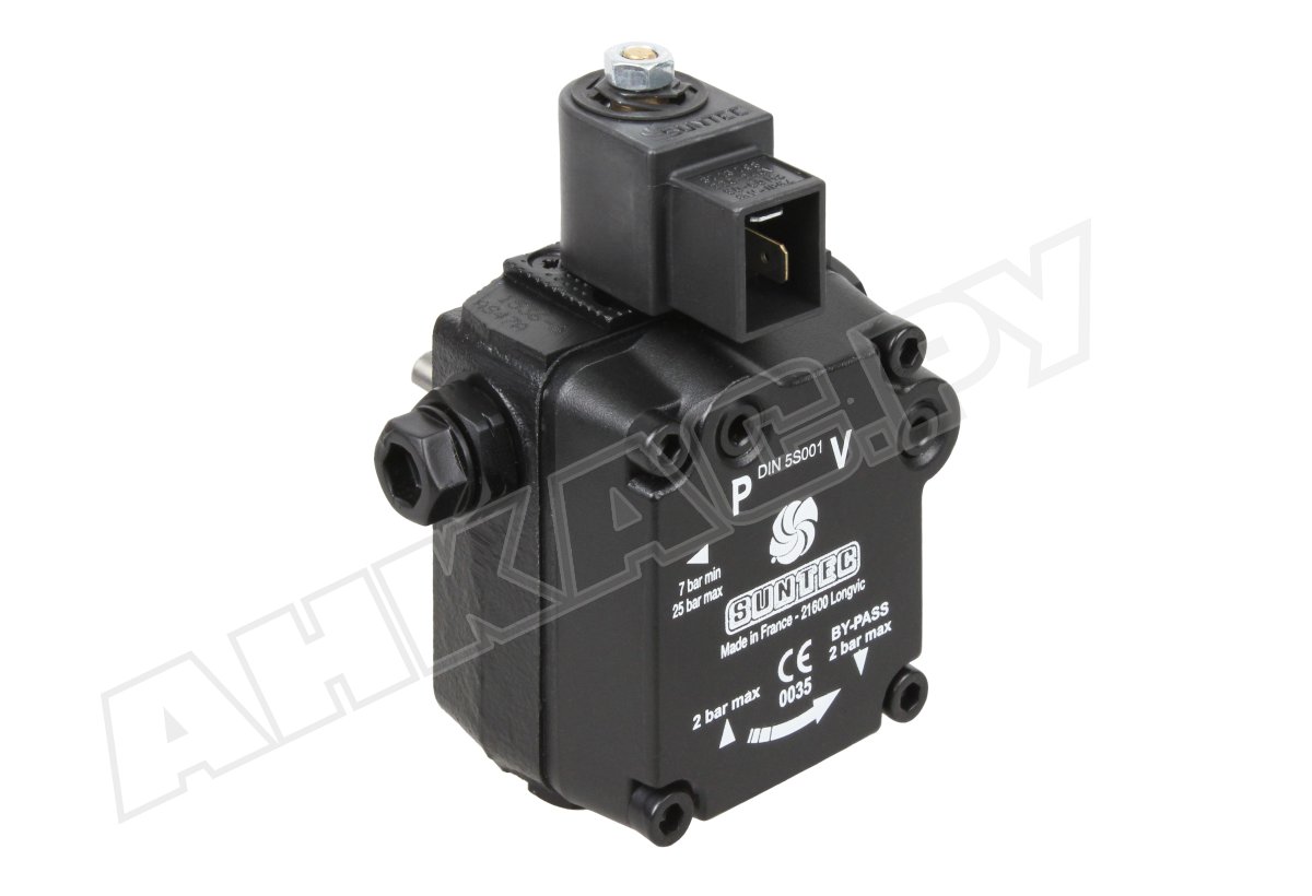 Шестерёнчатый топливный насос для горелки AS 47 A 1536 6P 0700 представлен французским производителем Suntec. Устройство предназначено для подачи ДТ на форсуночную линию под давлением от 7 до 14 бар.Серия AS подразумевает наличие встроенного электромагнитного клапана «нормально открытого» типа, который применяется для быстрого открытия и запирания канала подачи вне зависимости от частоты вращения вала электропривода.На сайте компании «АНКАС» предложены насосы для горелок различной модификации, которые востребованы в системах отопления бытовых и коммерческих помещений.Устройство и принцип работыДизельное топливо из бака перетекает к вращающейся по часовой стрелке зубчатой паре посредством разрежения в полости всасывания. Во время этого оно проходит через разборной сетчатый фильтр с рабочей площадью 6 см², отсеивающий ржавчину, мусор, стружку и другие примеси.Пройдя шестерни, горючее попадает в полость нагнетания под электромагнитный клапан, который работает в двух положениях:Прерывание: топливо не поступает к форсунке, а полностью сливается через открытый канал байпаса.Возобновление: жидкость преодолевает сопротивление запорного механизма, при этом bypass перекрывает магистраль на линию сброса.Таким образом в модели серии AS нет зависимости между процессом подачи рабочей жидкости и количеством оборотов электродвигателя.Основные преимущества:управление подачей горючего осуществляется электромагнитным клапаном;наличие стандартизированного G⅛" порта манометра и вакуумметра;насос Suntec используется в однотрубных и двухтрубных системах топливоподачи;высокий класс защиты от попадания воды и пыли внутрь механизма — IP54;быстрая регулировка давления топлива винтом;диаметр резьбы всасывающей и обратной линии G¼";небольшой вес — 1,1 кг.Насос Suntec AS 47 A 1536 6P 0700 с производительностью 39 л/ч применяется в жидкотопливных горелках Weishaupt, Baltur, Elco, Lamborghini мощностью до 1000 кВт. Электронное управление и предварительная настройка прибора позволит автоматизировать весь процесс работы отопительной системы.