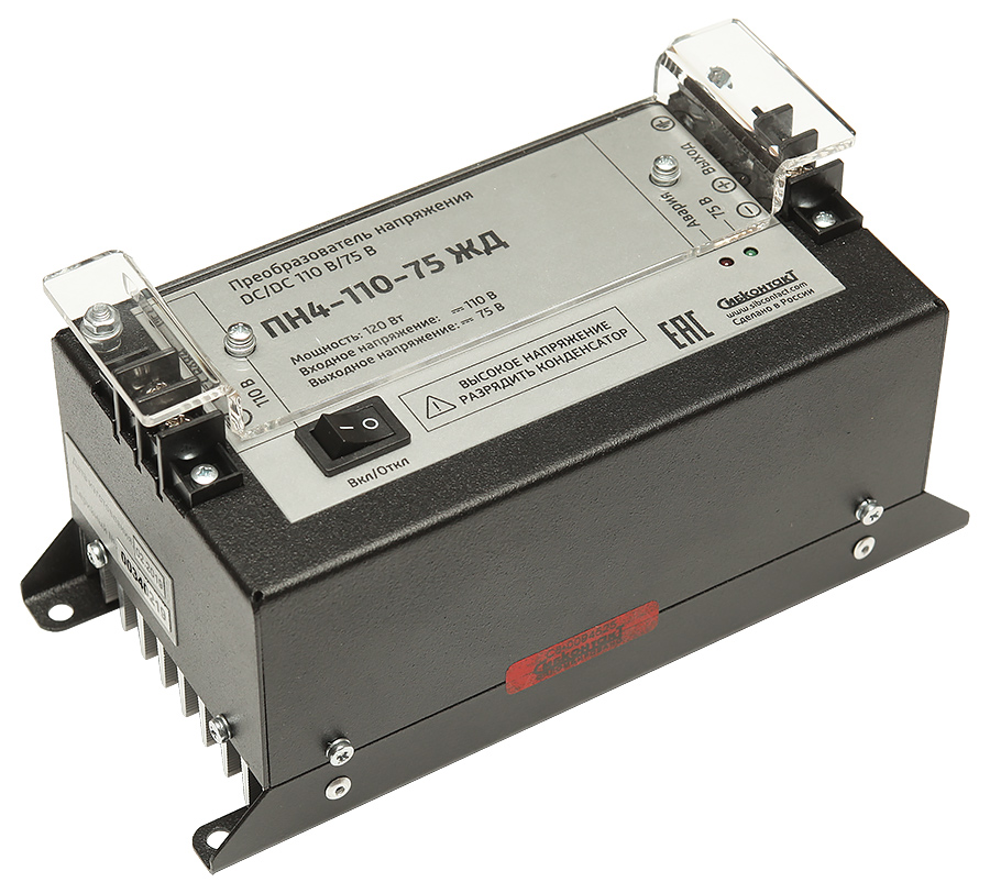 Конвертер ПН4-110-75 ЖД (DC-DC преобразователь постоянного напряжения 110В в 75 В) предназначен для понижения постоянного напряжения.