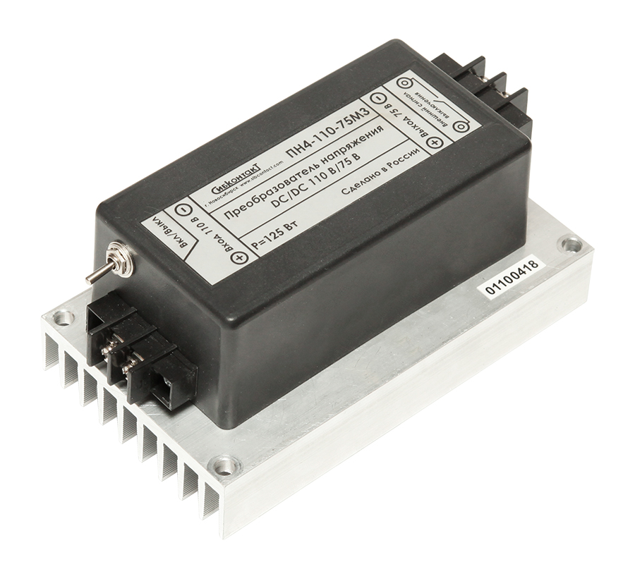 Конвертер ПН4-110-75M3 (преобразователь напряжения 110-75В DC-DC) предназначен для преобразования нестабилизированного постоянного напряжения (100-150) В в постоянное стабилизированное напряжение 75 В.