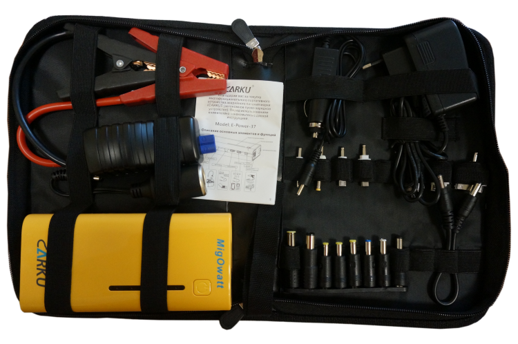 CARKU E-Power-37 – это универсальное карманное пуско-зарядное устройство, которое стабильно выполняет функции бустера для запуска двигателей мото- и автотранспорта при севшем штатном аккумуляторе, а также позволяет заряжать различную мобильную электронику: телефоны, смартфоны, планшеты, плееры и 12В-автодевайсы. Устройство имеет компактные габариты и малый вес, но при этом обладает внушительной емкостью аккумулятора в 16000 мАч, пусковым током в 250А и пиковым током в 500 А, что весьма полезно как в городском формате особенно при утренних проблемах с запуском авто, так и в путешествиях, на охоте, рыбалке или в командировках.