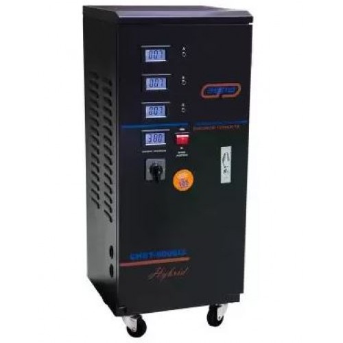 Гибридный стабилизатор напряжения «Энергия» Hybrid CHBT предназначен для защиты потребителей в бытовой и производственной сфере в условиях длительных по значению отклонений. Принцип работы может быть комбинированный ( сервоприводный и релейный) в зависимости от напряжения сети. Сервоприводный обеспечивает высокую точность благодаря плавной регулировке, а высокая скорость и широкий диапазон входного напряжения добивается с помощью релейного принципа.
