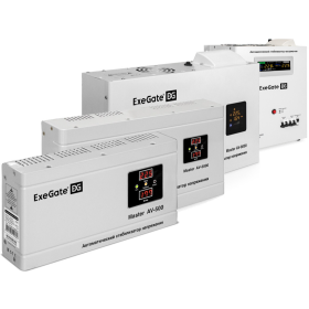 Стабилизаторы ExeGate в серии AV имеют вертикальный корпус, что позволяет устанавливать их на стену. Их современный дизайн удобно вписывается в любой интерьер. Эти устройства предназначены для стабилизации входного напряжения и защиты оборудования от его колебаний. При напряжении в сети от 140В до 260В они гарантируют подачу на подключенное оборудование стабильного напряжения 220В, с отклонениями, не превышающими нормы, установленные ГОСТ 32144―2013 "Нормы качества электрической энергии".