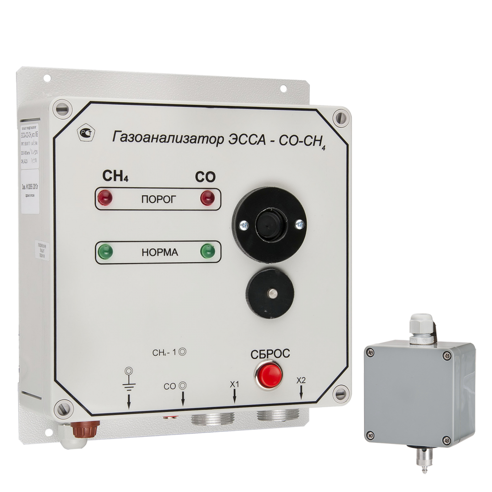 Стационарный газоанализатор ЭССА-СО-СН4 предназначен для измерения содержания оксида углерода и метана (пропана, бутана) в воздухе рабочей зоны, сигнализации и формирования релейных сигналов для управления внешними устройствами при превышении двух заданных уровней концентрации (ПОРОГ 1, ПОРОГ 2).