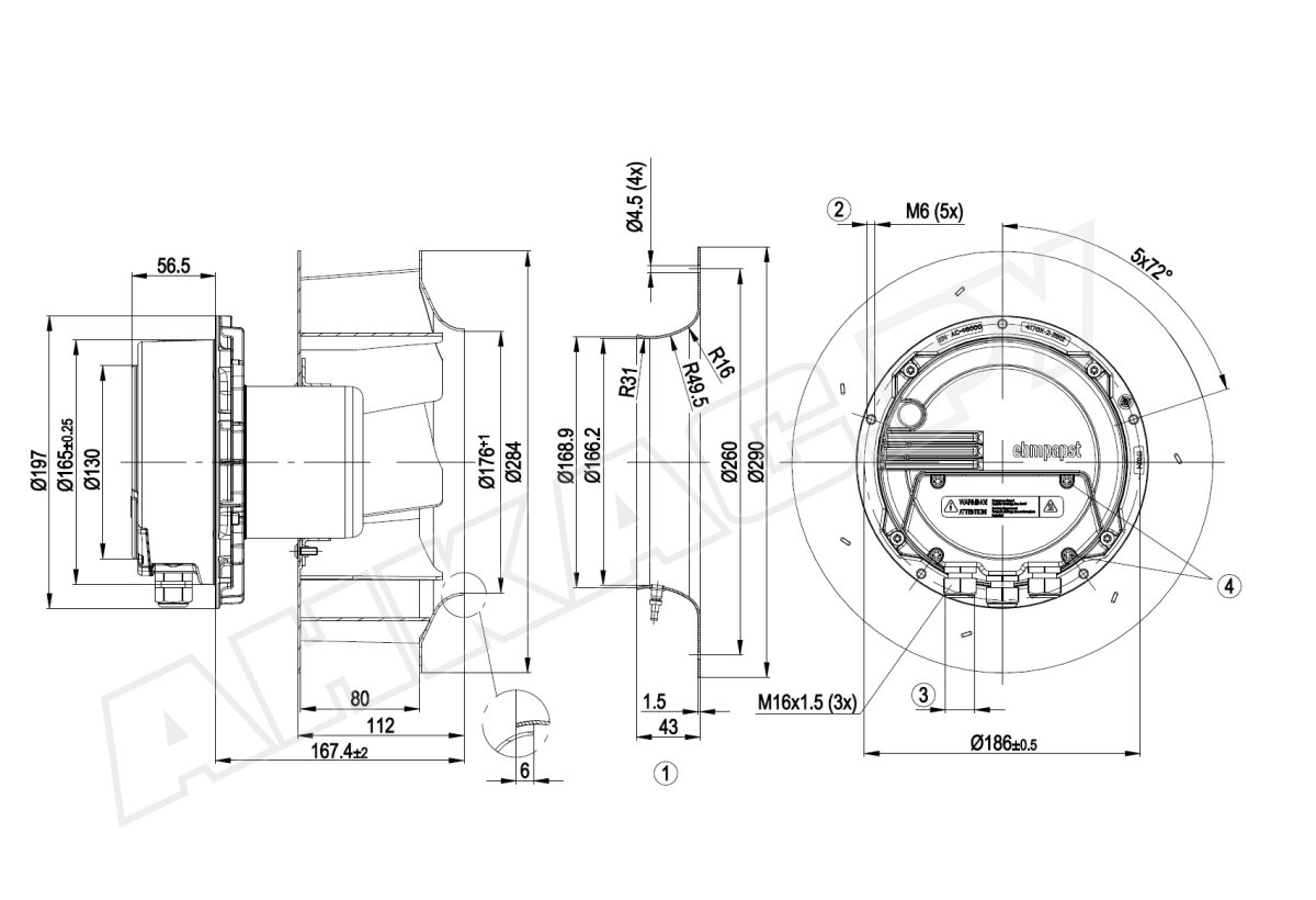 Центробежный вентилятор Ebmpapst R3G250AV29B1