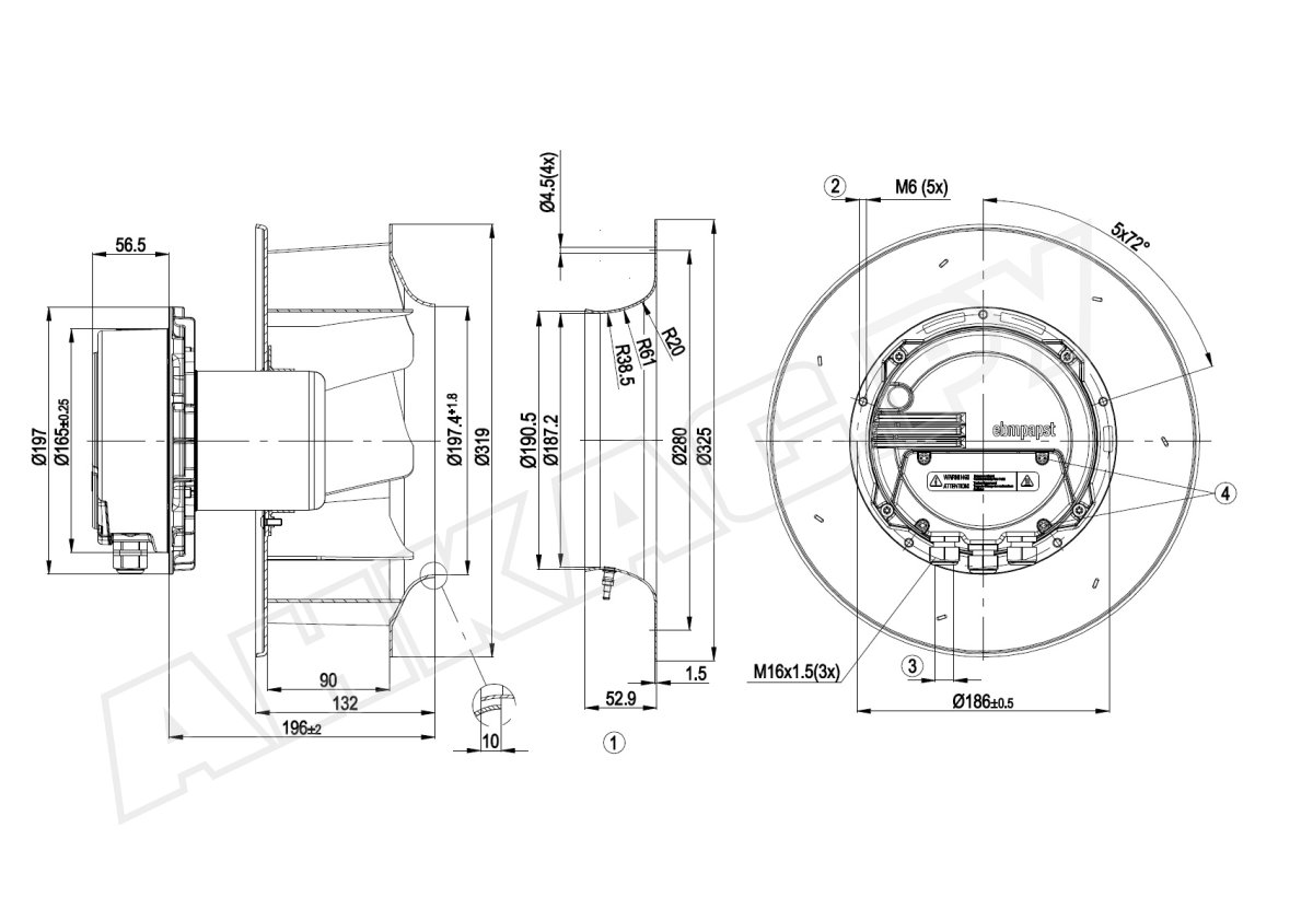 Центробежный вентилятор Ebmpapst R3G280AU11C1