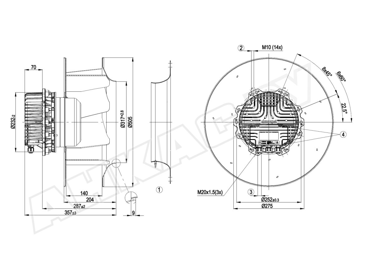 Центробежный вентилятор Ebmpapst R3G450AQ2401