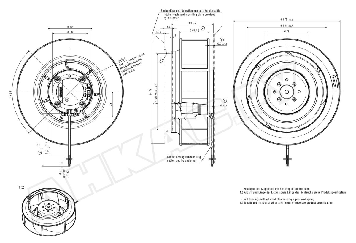 Центробежный вентилятор Ebmpapst RER 175-42/18/2 TDMLP
