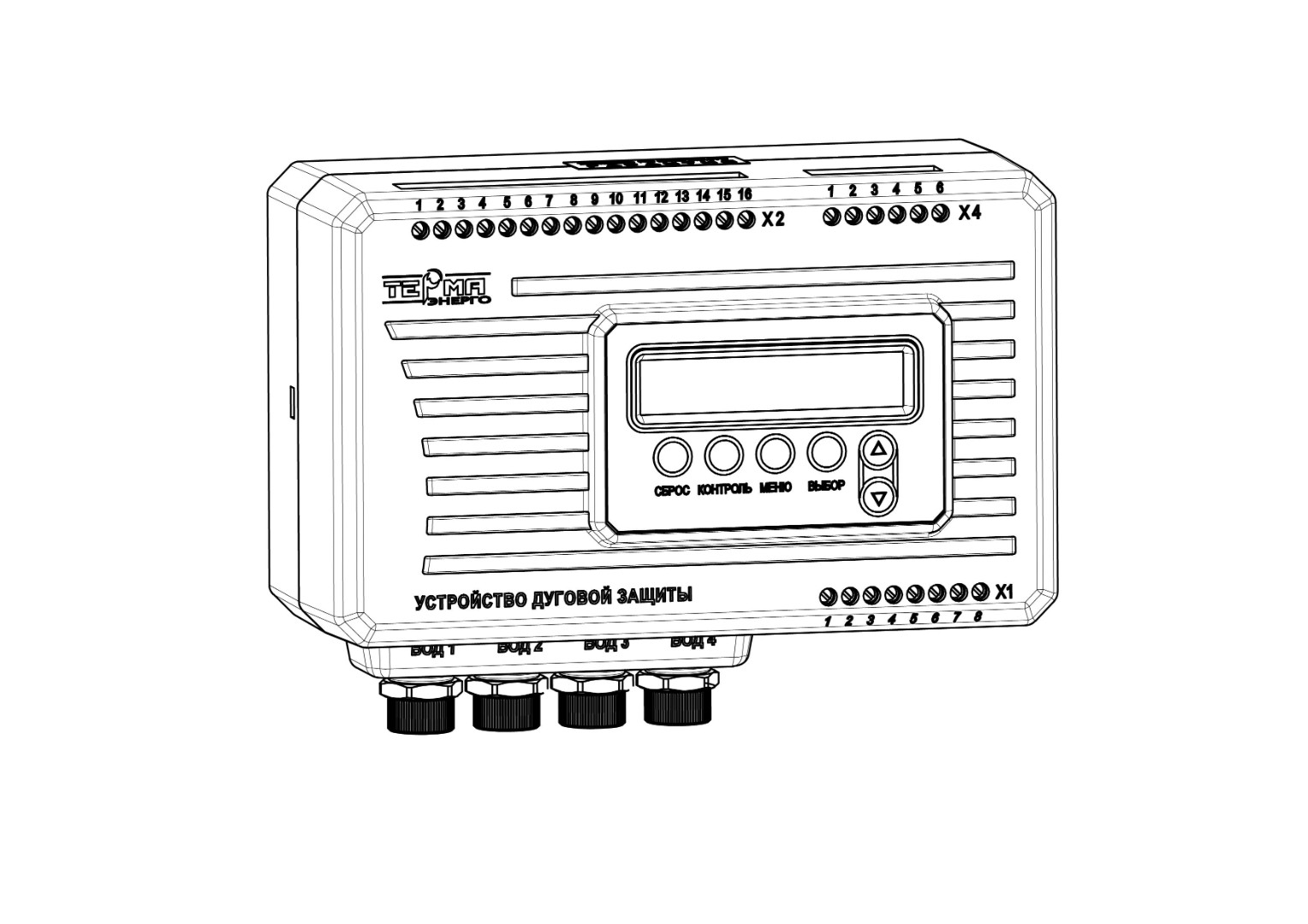 - индикацию на ж/к дисплее текущего состояния устройства («РАБОТА», начальные установки или состояние аварии). В состоянии аварии индицируются активные ключи и номера ВОД, зафиксировавших дугу. По номеру ВОД можно определить отсек и ячейку КРУ, в которой возникла электрическая дуга;
