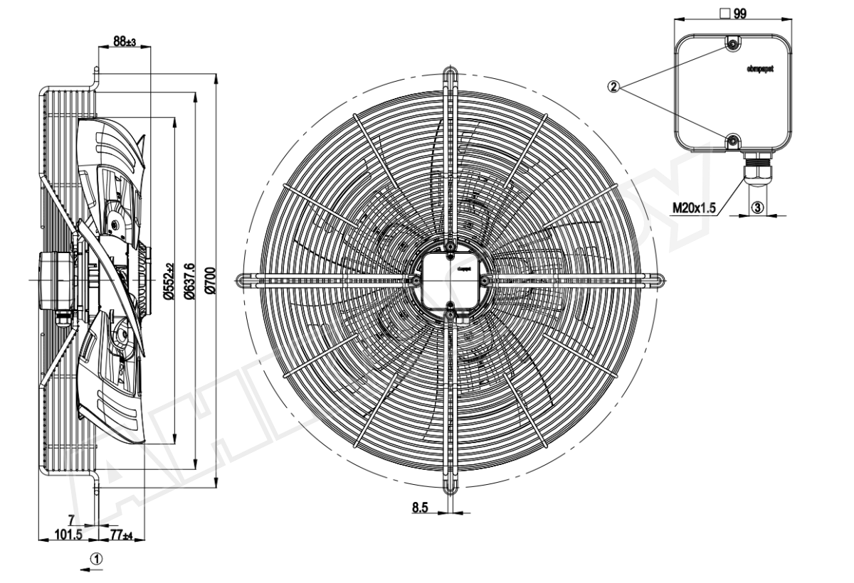 Этот продукт представляет собой высокопроизводительный осевой вентилятор, разработанный для обеспечения эффективного обмена воздуха в промышленных условиях.