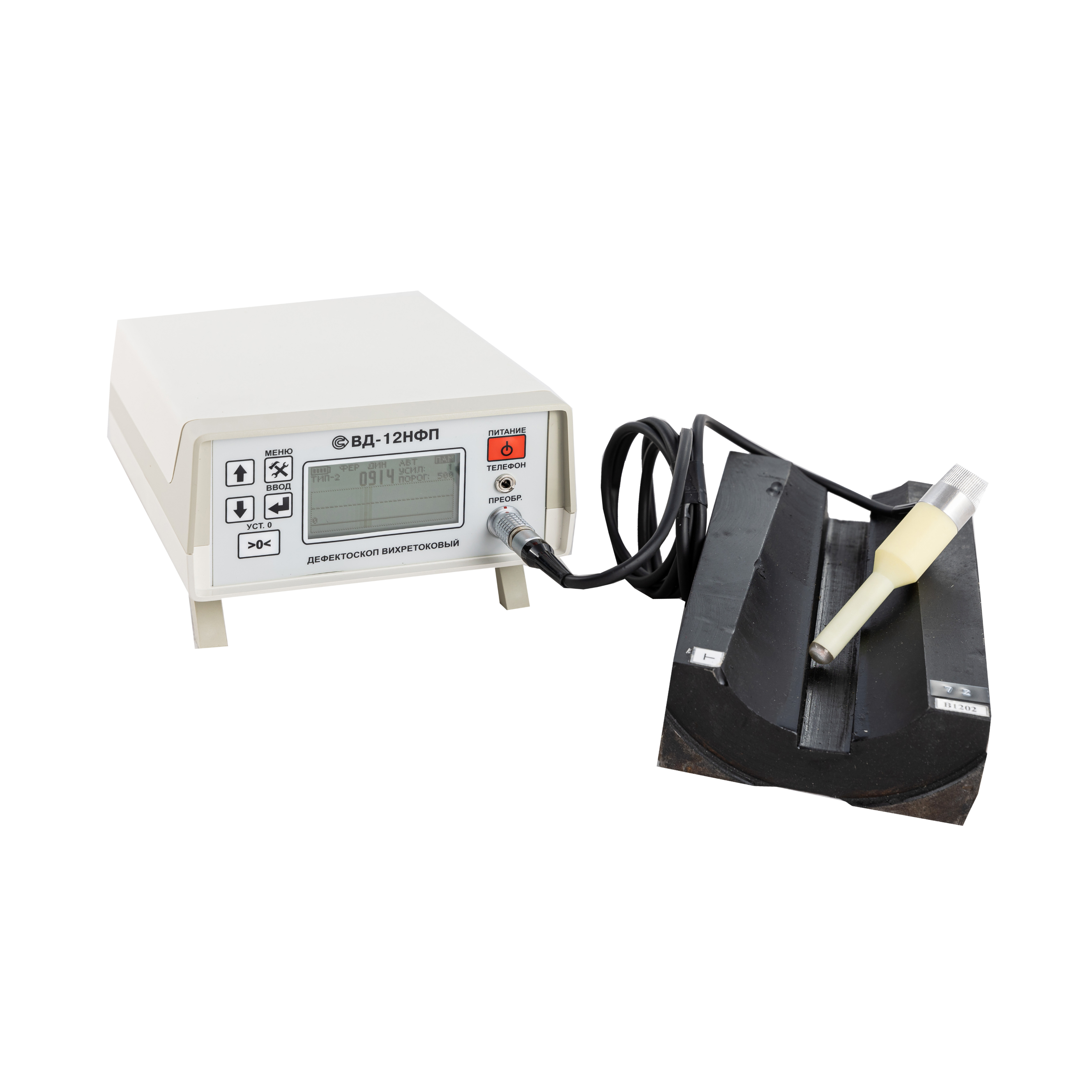 Поставляется в комплекте с двумя преобразователями для контроля изделий из металлов и сплавов в различных условиях.