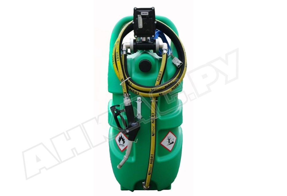 Мобильная мини-АЗС оснащена 110-литровым резервуаром, изготовленным из бензостойкого линейного полиэтилена с ребрами жесткости и без сварных швов. Это гарантирует высокую надежность и герметичность. Толщина стенок – 6,5 мм. Насос 12-вольтовый обеспечивает производительность до 50 л/мин.