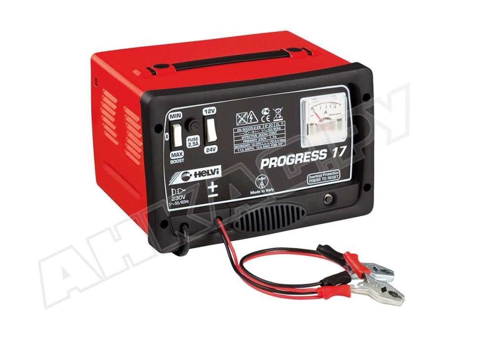 Зарядное устройство для автомобиля PROGRESS 17 служит для зарядки 12V/24V свинцовых аккумуляторов с жидким электролитом (традиционные WET/EFB батареи). Прибор производства итальянского завода Helvi S.p.A. относится к полупрофессиональному оборудованию: помимо эксплуатации в личном гараже, PROGRESS 17 можно использовать в автопарках небольших транспортных предприятий и пунктах сервисного обслуживания.